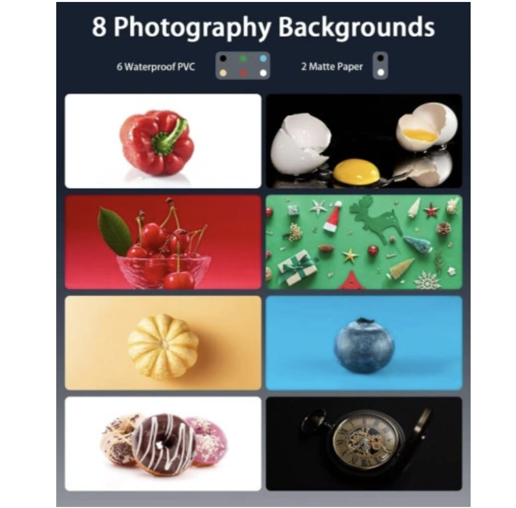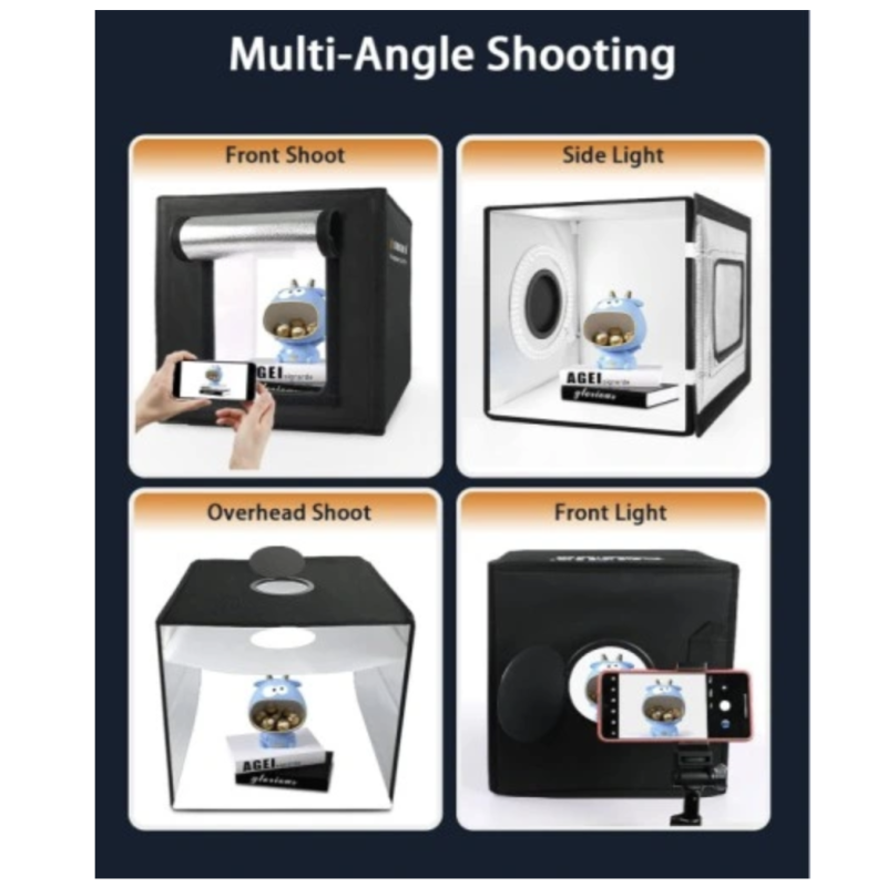 Ten namiot został zaprojektowany z czarną tkaniną Oxford, aby zapobiec wpływowi światła otoczenia na zdjęcia, wbudowany panel oświetlenia pierścieniowego LED zapewnia równomierne oświetlenie, wysoce odblaskowe srebrne wnętrze rozprowadza światło w każdym rogu oraz wyjątkowe, zamykane okno przednie, które dodatkowo odbija i wypełnia światło. Tworzy doskonałe środowisko fotograficzne dla fotografii produktowej.