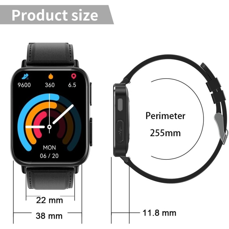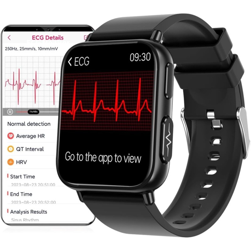 Monitor EKG: smartwatch dla mężczyzn z pomiarami stanu zdrowia, diagnostyką EKG/PPG/AI/tętno/ciśnieniem krwi, tlenem we krwi/stresem, SpO2, monitorowaniem snu. Smartwatch może mierzyć temperaturę ciała przez 24 godziny, dane o temperaturze ciała moż zapisać w aplikacji [DeepFit]. Raport EKG moż eksportować z aplikacji i udostępniać. Wskazówka: dane smartwatcha służą jedynie jako punkt odniesienia, nie leży używać zegarka do celów medycznych.