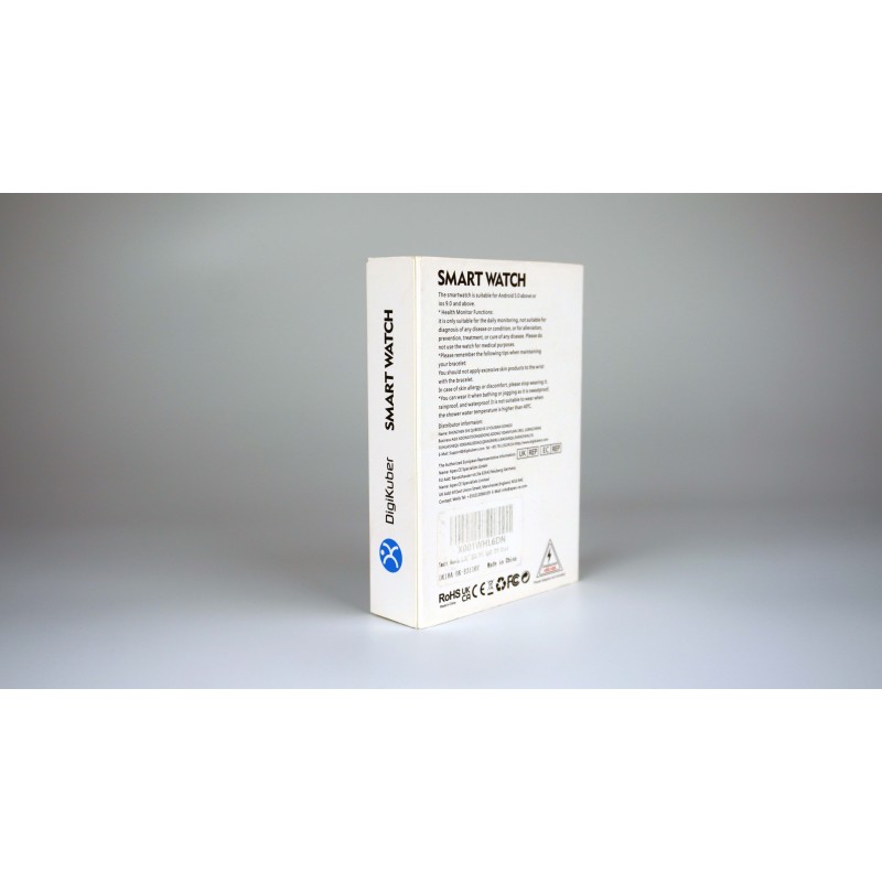 Ekran dotykowy LED o przekątnej 1,91 cala i różne funkcje: inteligentny zegarek elektrokardiogramu pokazuje godzinę i datę, powiadomienia o połączeniach i wiadomościach, krokomierz, zapis spalonych kalorii, grywanie kilometrów sportowych, różne tryby sportowe, odliczanie, stoper, przypomnienie o siedzeniu, stoper, sterowanie muzyką, sterowanie aparatem. Wskazówka: Aby zsynchronizować datę i godzinę, leży połączyć zegarek z aplikacją.