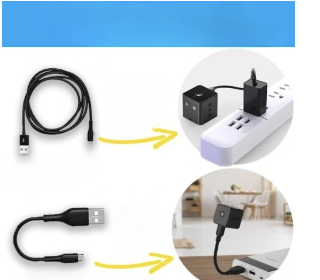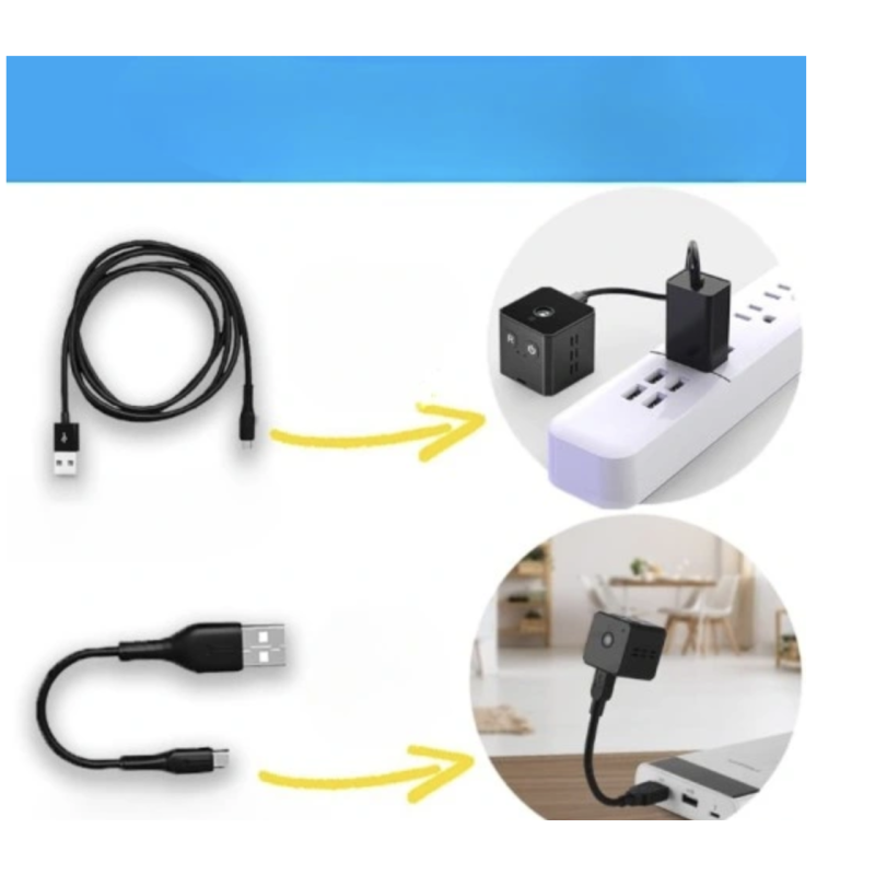 2 KABLE USB: kable USB są kompatybilne z 99,99% kamer szpiegowskich x1 Standardowy kabel USB idealny do ładowania mikrokamery x1 Twardy kabel USB idealny do ładowania kamery szpiegowskiej